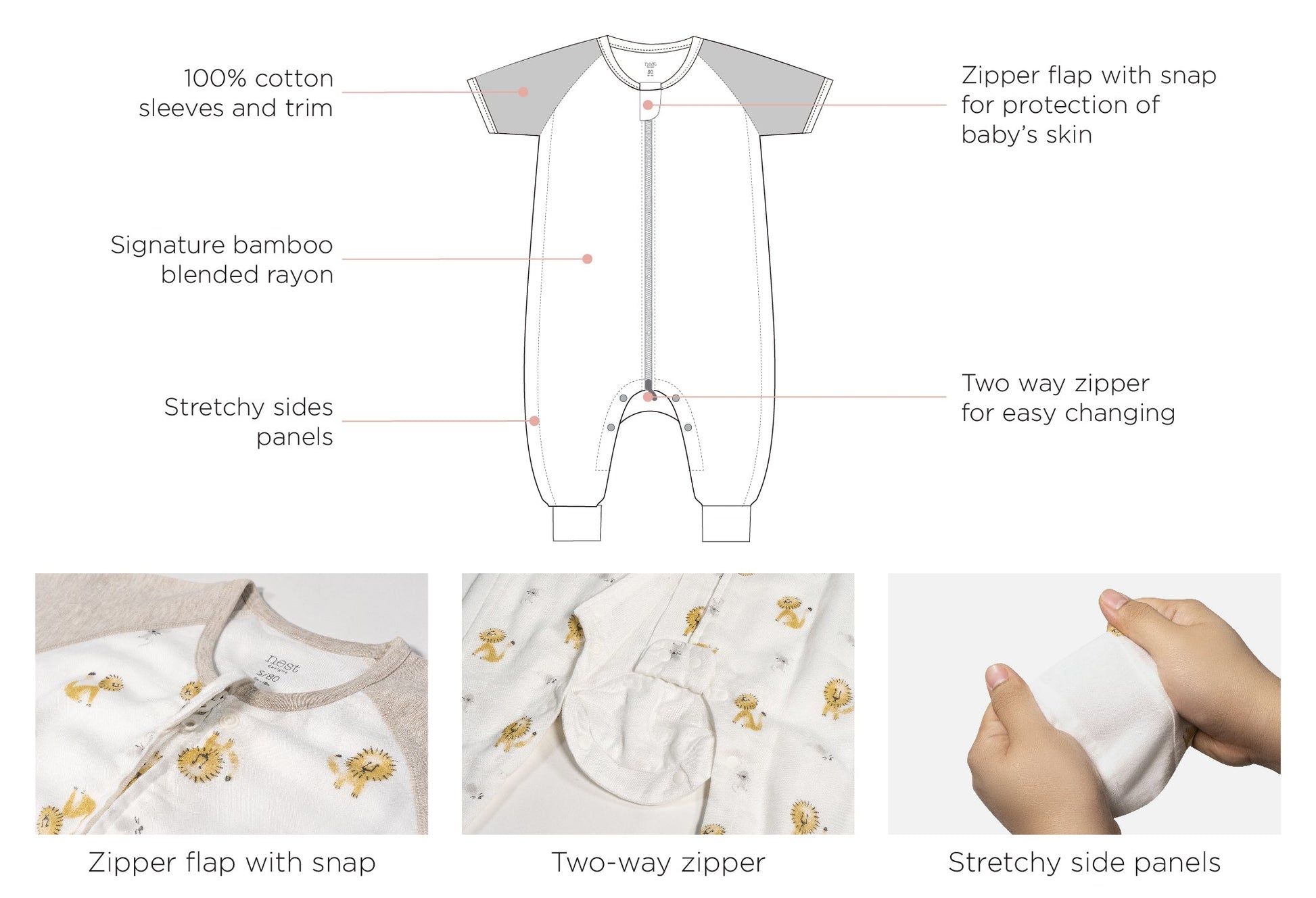 Nest Designs Raglan Bamboo Pima Short Sleeve Footed Sleep Bag 0.6 TOG -The Lion and The Mouse