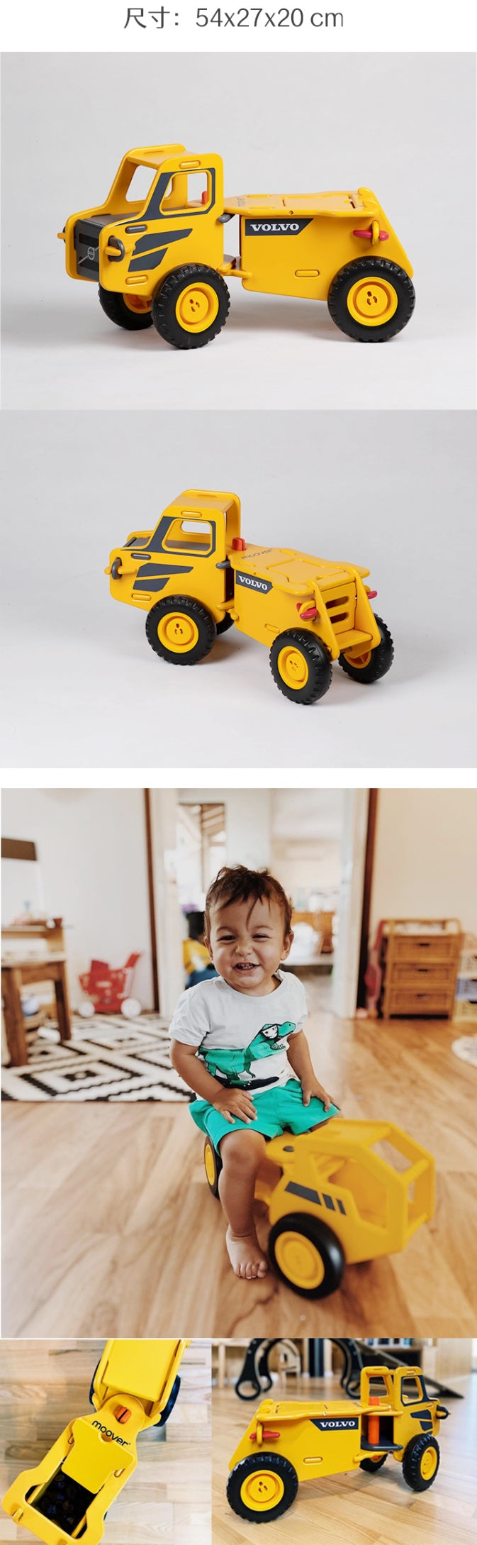 车迷爱好者的不二之选 简单,干净,好看,有趣 可骑乘滑步,练习滑步动作,锻炼腿部力量 在滑步前行的运动游戏中探索平衡感知 1岁-4岁的宝宝都可以”乘坐” 结构牢固,最大可称重50kg 卡车头可以左右控制,从小掌握方向感