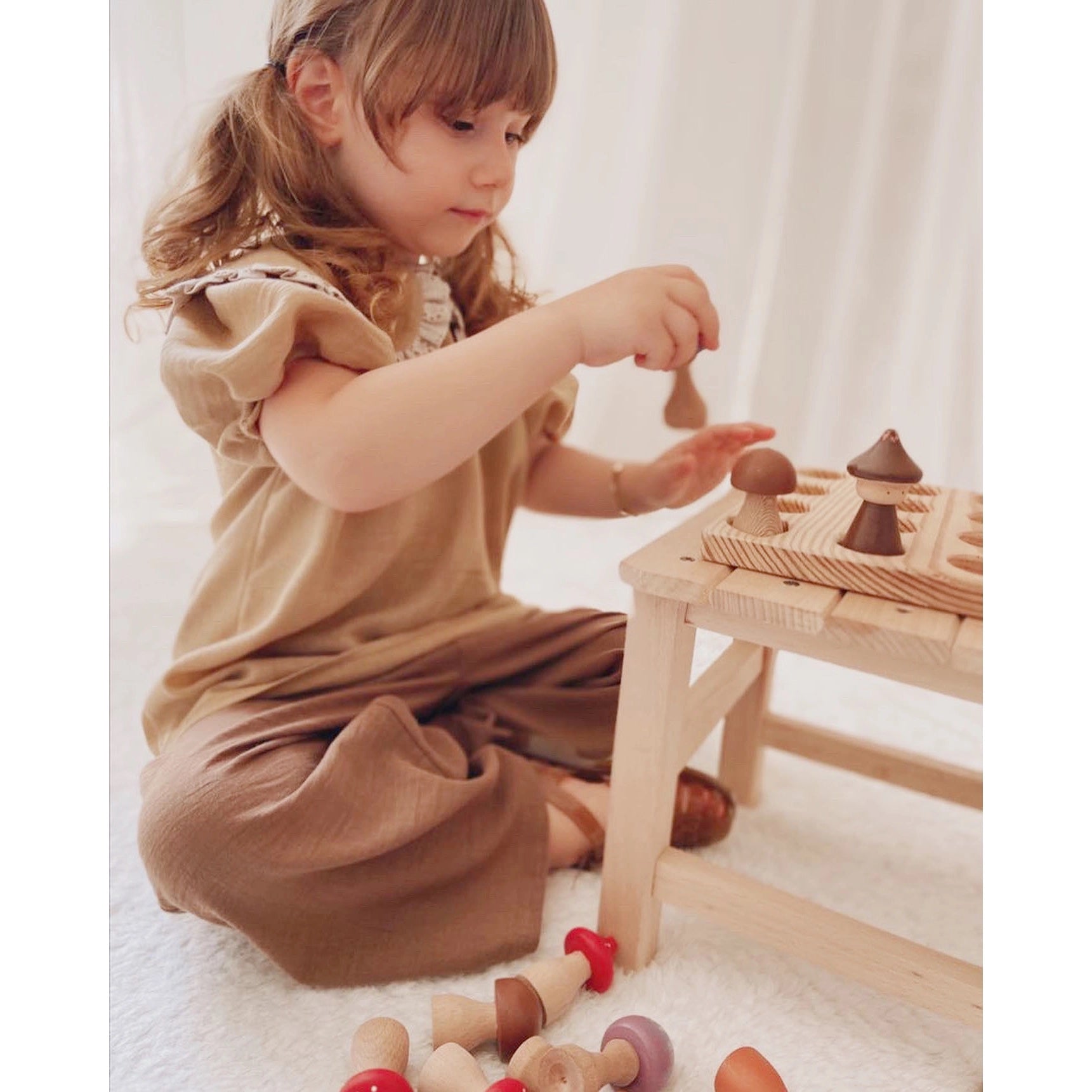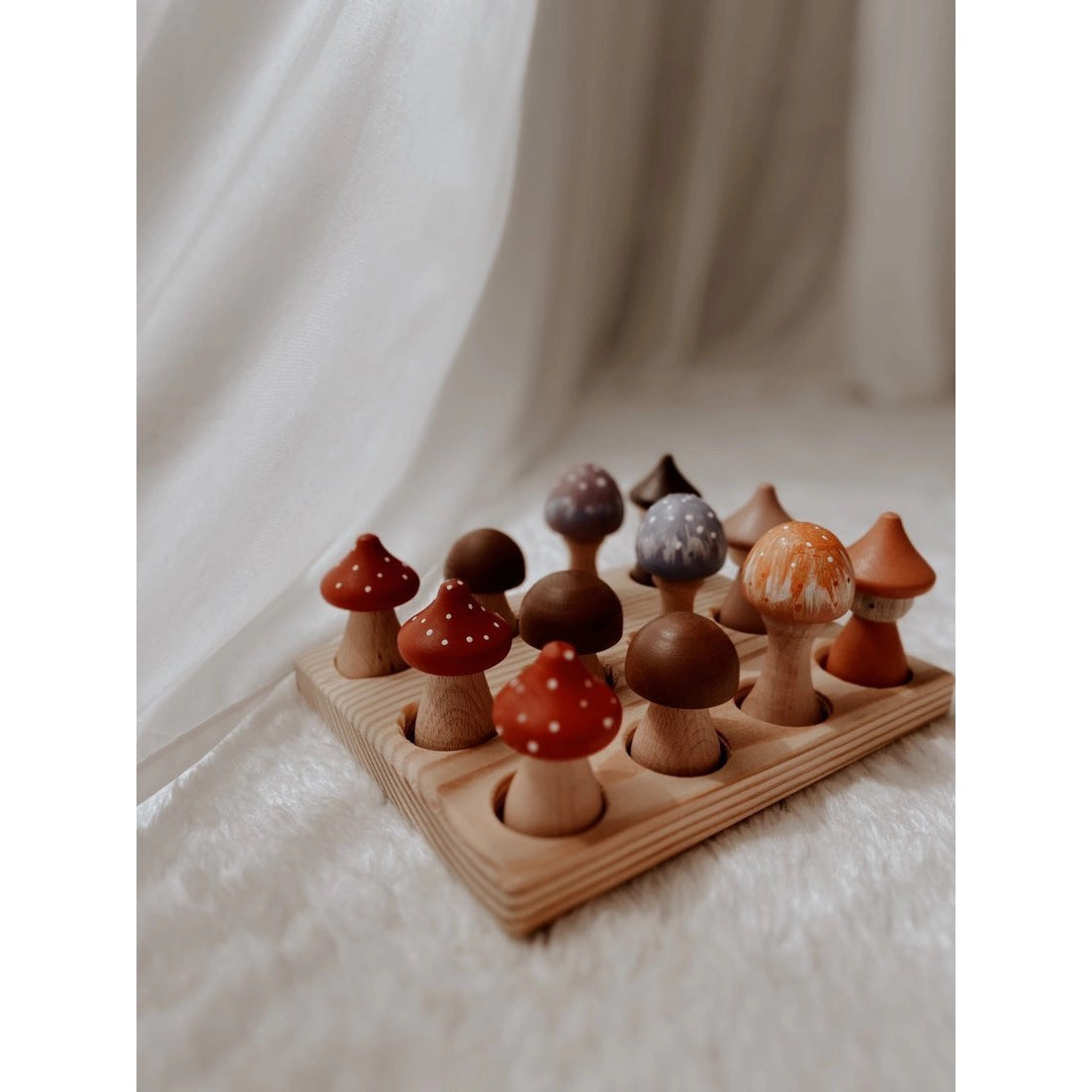 这可能是最可爱的嵌套玩具套装!底座由海滩木材制成,有 12 个嵌套玩具。该套装包括 3 个小矮人、3 个鹅膏菌红白蘑菇、3 个纽扣蘑菇和 3 个梦幻蘑菇。每个都有不同级别的嵌套挑战。纽扣蘑菇最容易筑巢,而梦幻蘑菇最难筑巢。小宝贝们还可以在抓住钉子并松开它们的同时锻炼他们的小手肌肉。它有助于眼睛和手的协调,视觉和空间感知。看着您的孩子沉浸在森林开放式戏剧的世界中。