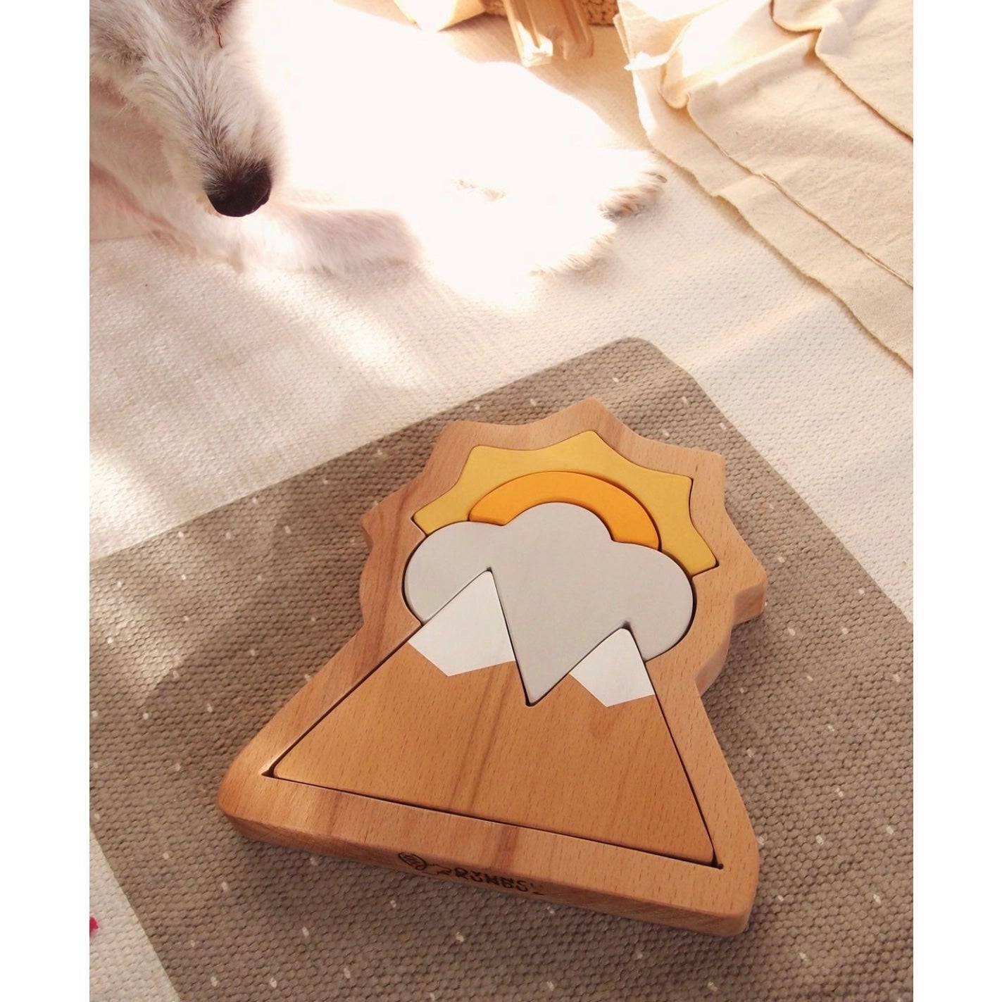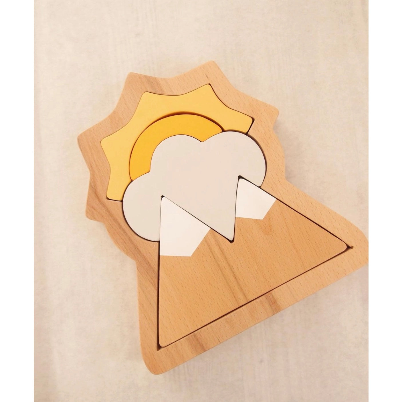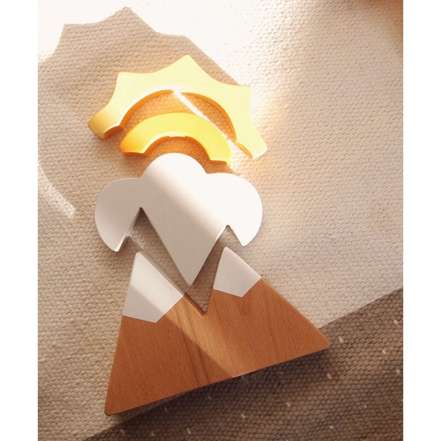这款玩具以黄色和白色色调精心手绘,采用木制框架,由 4 个部分组成。它可以用作堆叠积木或着拼图。 这款叠叠乐可以帮助孩子加强他们的精细运动技能、解决问题的技能、区分能力、大小概念的认知发展。