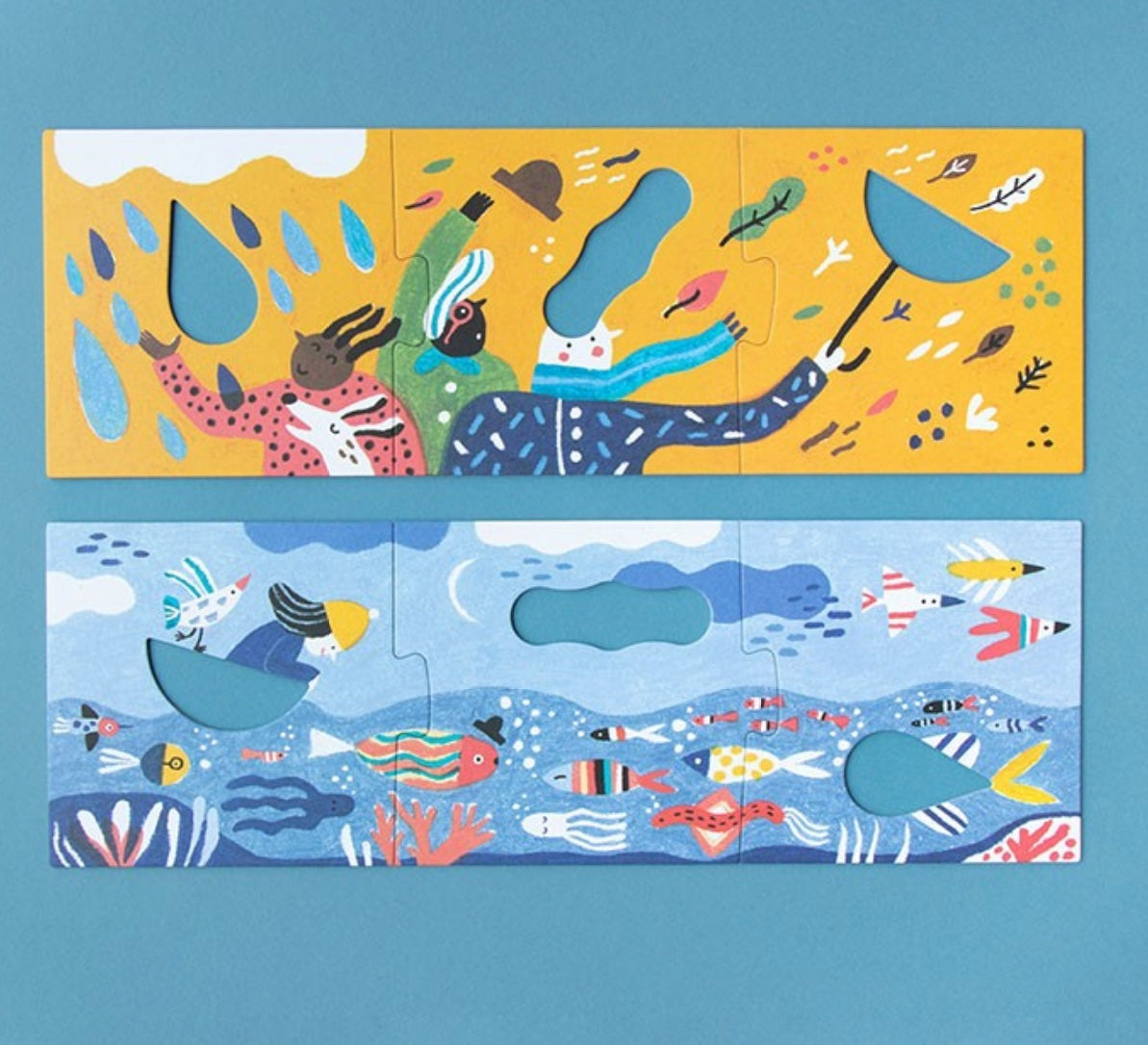 是月亮还是小船,是云还是毛毛虫,是鱼还是水滴?这是一个充满想象力的游戏!组装拼图并插入木片。4 个拼图,每个拼图有 3 块大木片,每块大木片上有 3 块木片,这些木片的含义会随着拼图的不同而变化。适用于 2 岁以上儿童。