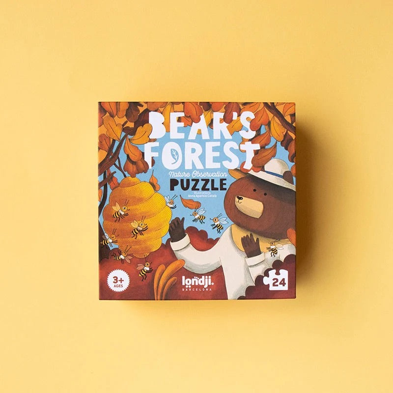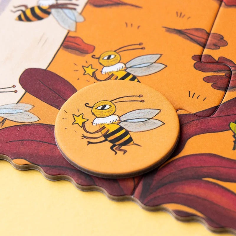 我们的朋友熊正忙着享用蜜蜂的蜂蜜。仔细观察,你会发现森林里所有与它们作伴的昆虫和生物!